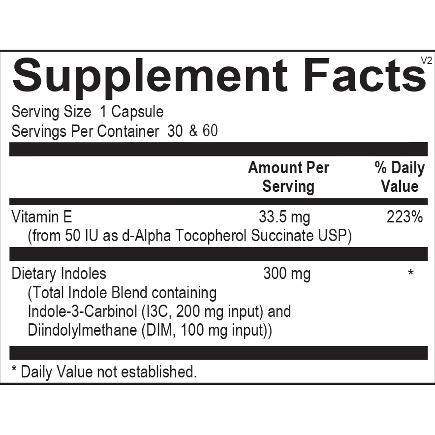 EstroDIM® is a targeted supplement that combines the synergistic benefits of the cruciferous vegetable metabolites indole-3-carbinol (I3C) and 3-3’-diindolylmethane (DIM) to support balanced estrogen metabolism.