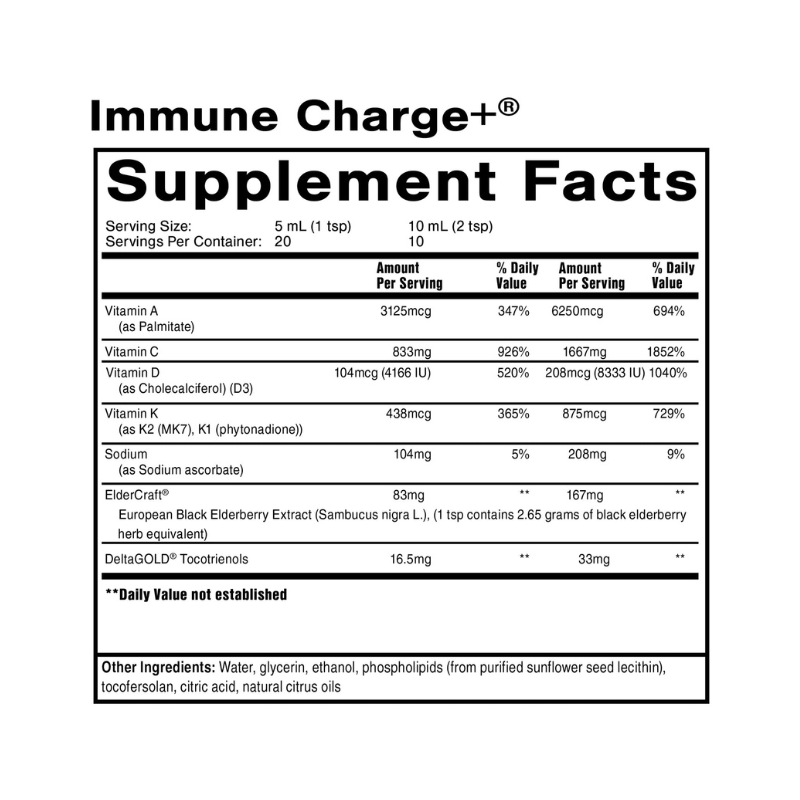 Liquid Elderberry, Vitamin C, E, K1, K2, Vitamin D for Optimal Immune System Support.
