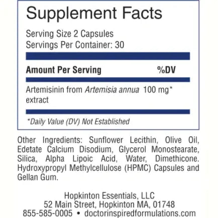 Ingredients: Artemisinin from Artemisia annua extract (leaf)