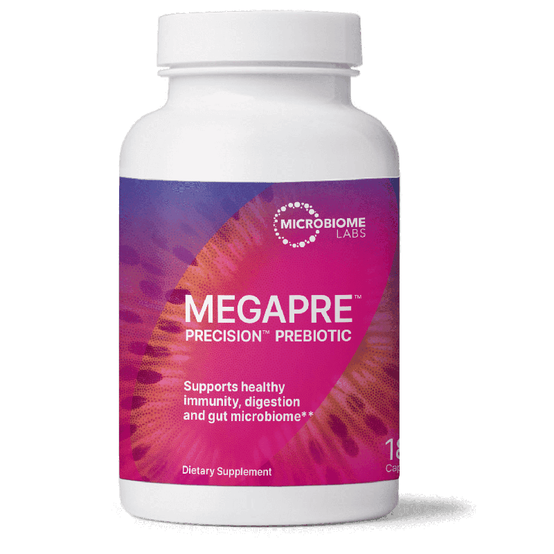 MegaPre™ 180 Capsules is the first Precision Prebiotic™ supplement made up of clinically tested, non-digestible oligosaccharides that can increase microbial diversity and selectively feed beneficial bacteria like Akkermansia muciniphila, Faecalibacterium prausnitzii, and Bifidobacteria. MegaPre™ REINFORCES the beneficial microbial changes created by MegaSporeBiotic™ to promote a strong and diverse microbiome.*