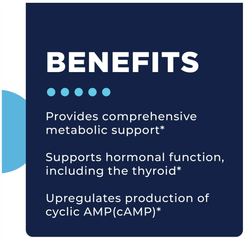This one-of-a-kind formula supports hormonal function, including sex hormones, glucose metabolism and the conversion of thyroid hormones (T4 to T3).* Metabolic Activator can assist in upregulating production of cyclic AMP (cAMP), aid healthy antioxidant balance, and support healthy weight management.*