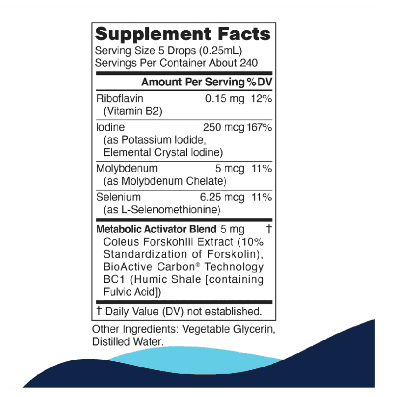 Metabolic Activator combines iodine with Coleus forskohlii extract, selenium, potassium iodide, riboflavin, and molybdenum, which work synergistically to support thyroid and metabolic activity.*