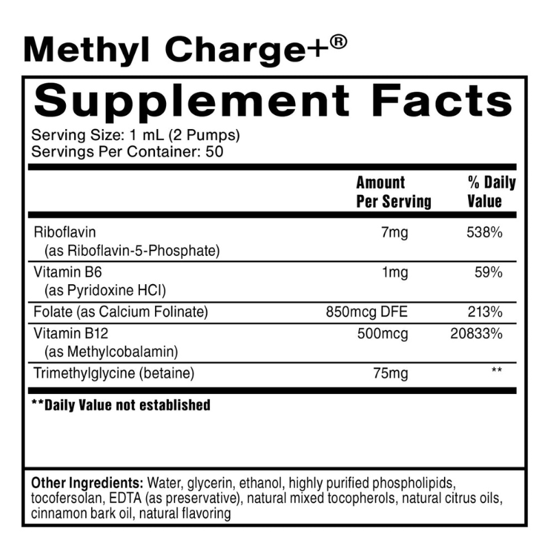 Support for Undermethylators – Methyl Charge+® addresses the needs of undermethylators with a thoughtful blend of four key B vitamins: folate, vitamins B2, B6, and methyl B12, along with TMG.