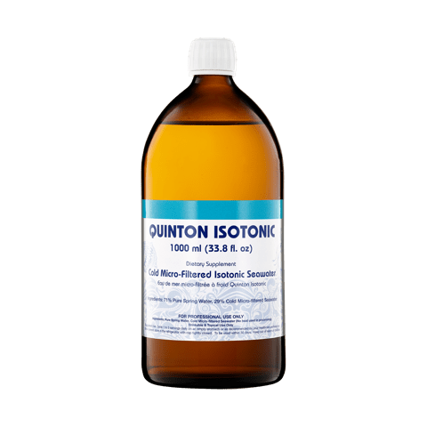 Quinton Isotonic provides a scientifically formulated solution for natural rehydration and homeostasis. With 0.9% bioavailable minerals and trace elements, it uniquely supports the restoration of the biological terrain. Made from pure, sterile seawater, it has a pH of 7.2 and contains an identical micro-mineral composition to extracellular fluid. Experience the benefits of Quinton Isotonic in a convenient 1 liter bottle.