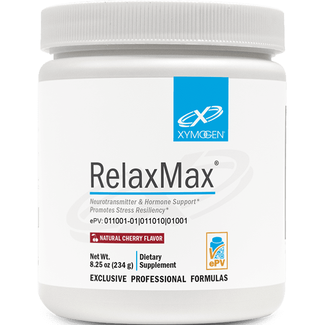 RelaxMax® is an innovative formula in the form of cherry-flavored, powdered drink mix.   It contains a blend of ingredients that supports the body's natural synthesis of catecholamines, the inhibitory neurotransmitter GABA, hormonal balance, and healthy glucose metabolism.  RelaxMax aims to promote a calm, relaxed, well-balanced emotional and physiological state.*
