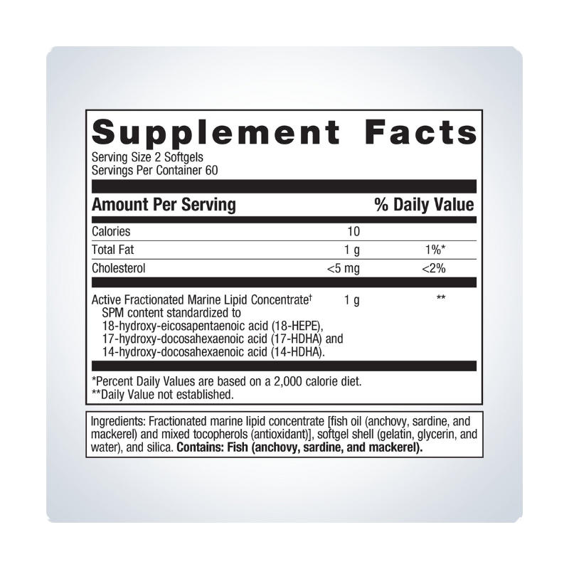 †Study of 149 subjects who consumed an SPM product identical to SPM Active® (2 softgels) for 1 month and 120 subjects who consumed the SPM product for 3 months (2 softgels for one month and 1 softgel for the following two months).