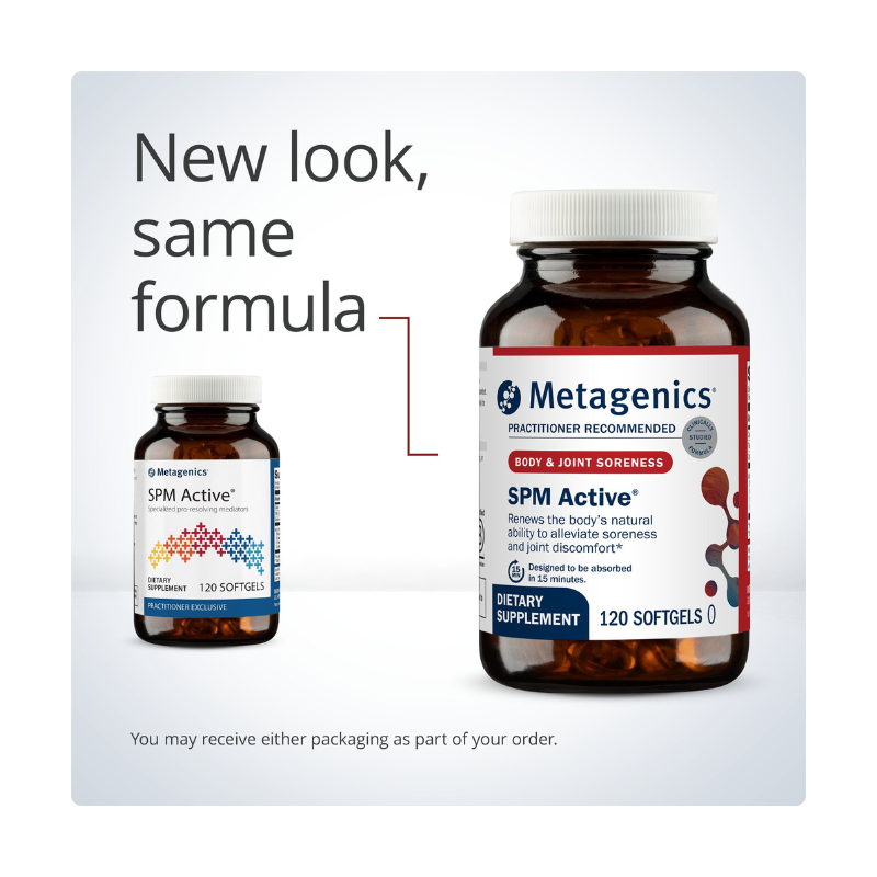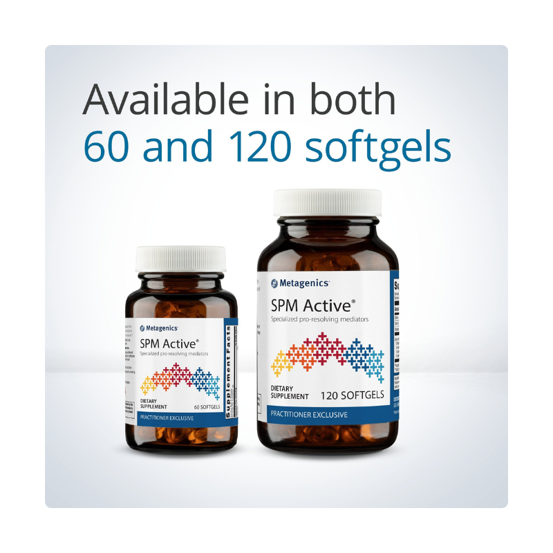 Specialized pro-resolving mediators (SPMs) are molecules our bodies produce naturally in response to damaged tissue due to physical challenges and are a critical component of the body’s natural healing process. Unfortunately, the body may not produce enough SPMs on its own. Diet, lifestyle, excess body fat, and other health challenges can affect SPM production. That’s where our clinically studied SPM Active can help.*