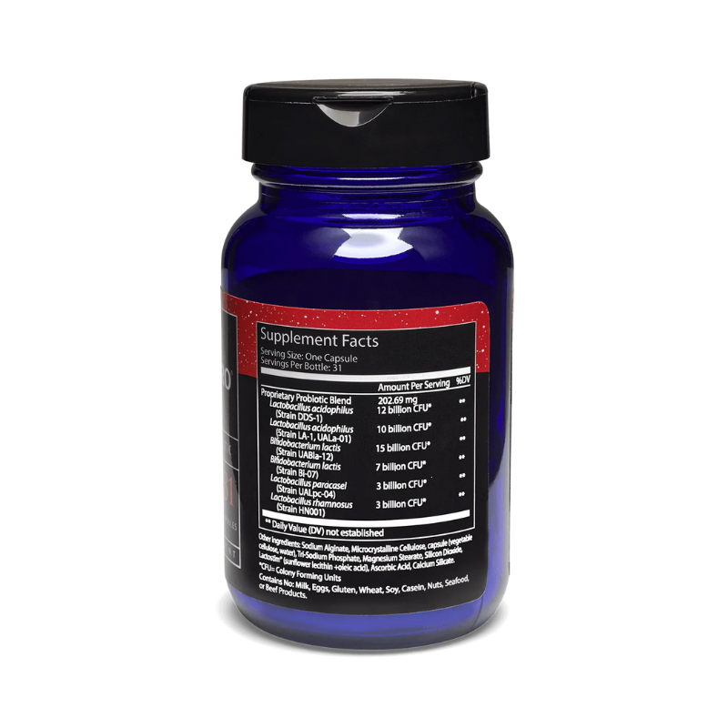- Each capsule contains 50 billion CFU of carefully selected Lactobacilli and Bifidobacteria strains to support a balanced gut microbiome.