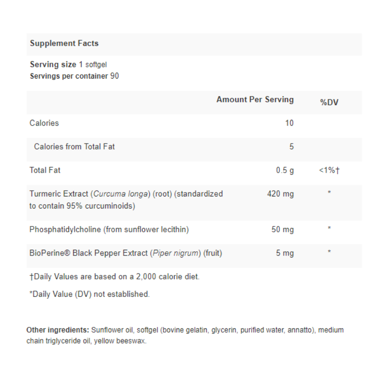 - 420 mg of high-quality turmeric extract standardized to 95% curcuminoids per serving