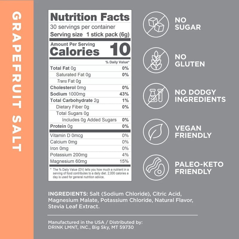 Zero-Sugar Electrolytes Grapefruit Salt (30 Stick Pack)